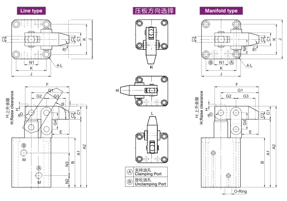 This type of hydraulic cylinder, the clamping mechanism is the lever principle, the piston is pushed out for the clamping state, the main parts of the mechanism are installed outside the cylinder body, easy to maintain. The material of cylinder block and clamping mechanism is made of carbon steel for mechanical construction, which is durable and has long service life.