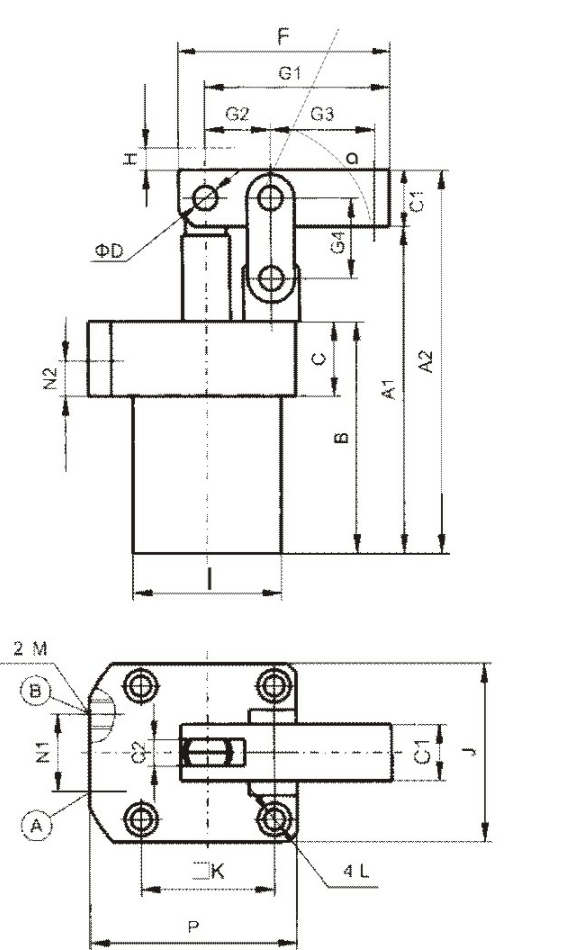 主要功能为空压缸作动时,活塞下压行程中压板会旋转到设计的角度,再沿着直线继续下压直到压板夹紧工件。
