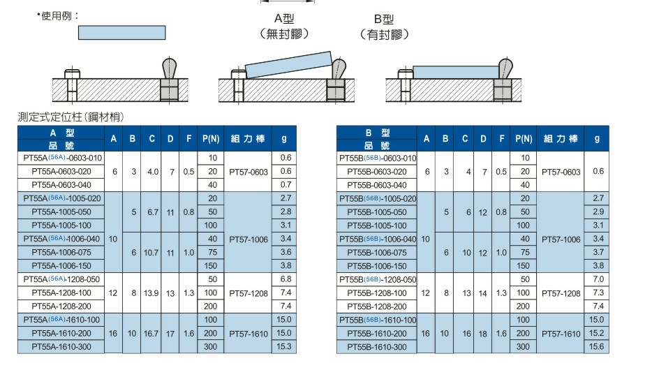 PT-55/56 侧向式定位柱 钢材梢/塑钢梢