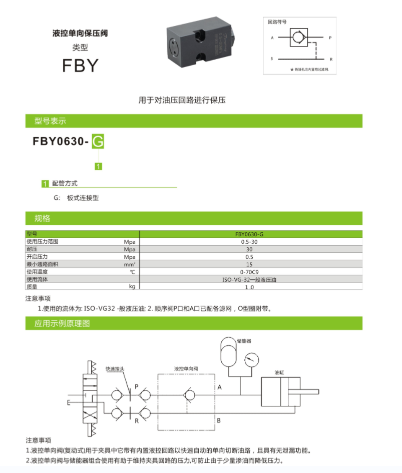 FBY液压单向保压阀