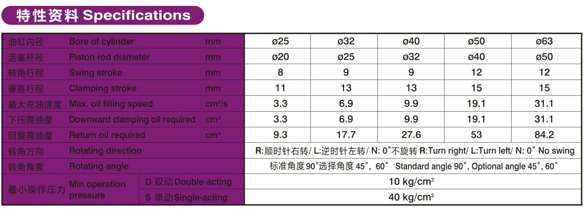 油压缸夹持动作为下压式,含有旋转行程(请勿夹持工件)以及垂直下压行程。