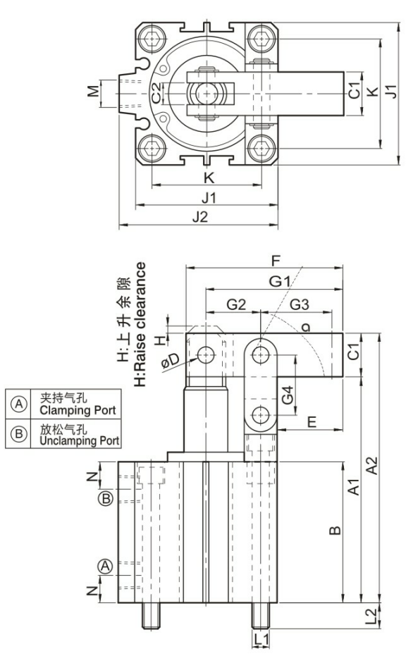 建议使用空压转角缸,A.B入气口请加装流量控制阀,避免速度过快,以及转角行程中,请勿夹持工件,导致损坏缸体及内部零件。