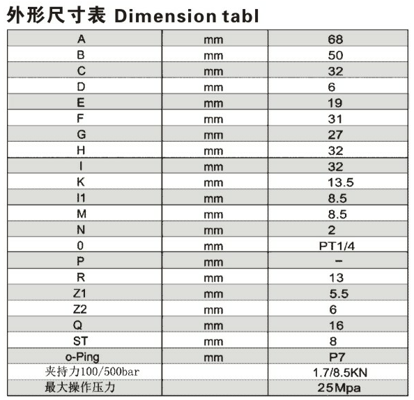 此型式块型缸为低位摆固定式油缸,单作用,弹簧复位,最大操作压力25MPA。