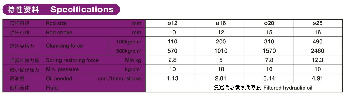 此型式油压缸使用于顶出场合,弹簧退回,无法使用于拉式场合。